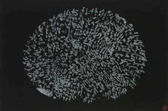 Howardena Pindell, Cassiopeia/Andromeda, December 1999: open bite etching, printed in white, on black wove paper